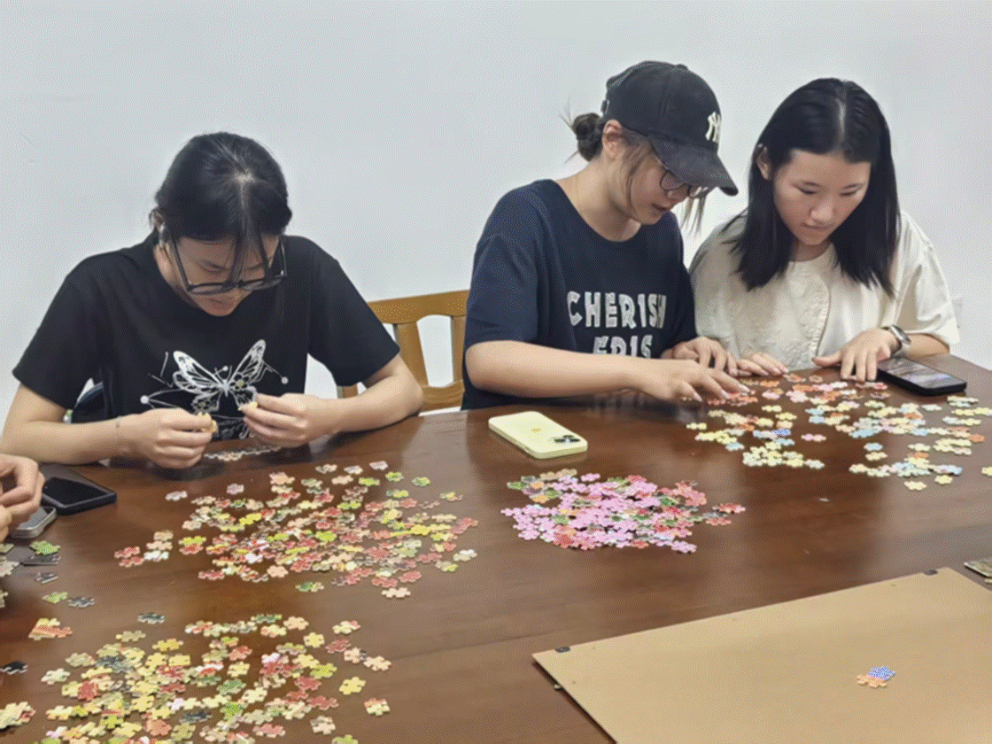 无论是指尖流转的手工艺创作,还是齐心协力的拼图时光,都是外国语学院学子向祖国告白的方式。以匠心传递情怀,以协作凝聚热爱,愿我们都能将这份家国热忱,化作逐梦前行的力量,与祖国共成长、共辉煌!
