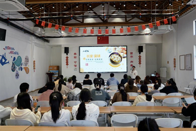 活动现场暖意涌动,“长安宴球”非遗文化讲解率先拉开序幕。长安小圆头宴球负责人徐铖围绕这道海宁非遗美食的历史渊源、文化内涵展开分享,从严选食材的讲究到代代相传的制作工艺,从民俗场景中的寓意象征到新时代的传承演变,生动讲述让学子们深入了解这道美食背后承载的乡愁记忆与地方文脉。讲解结束后,志愿者有序分发鱼肉馅、鱼皮、蒸笼、手套等制作材料与工具,新鲜的食材、整齐的装备瞬间点燃学子们的实践热情。